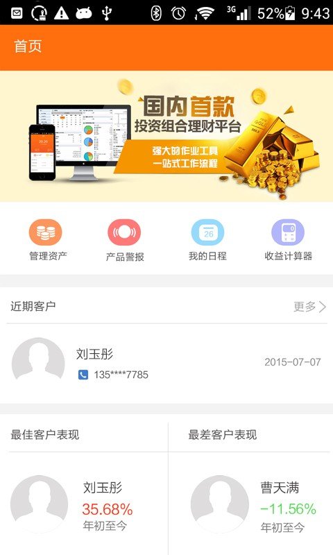 1.客户管理功能:理财师可以方便地管理自己的客户资料,记录客户的投资偏好及行为,从而提供更加个性化的服务。