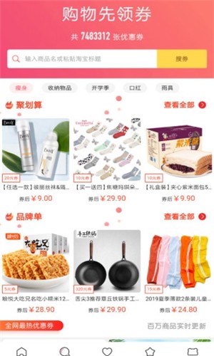 2.优惠券领取:用户可以直接在App内领取各大购物平台的优惠券,并在购物时直接使用,轻轻松松减少开支。