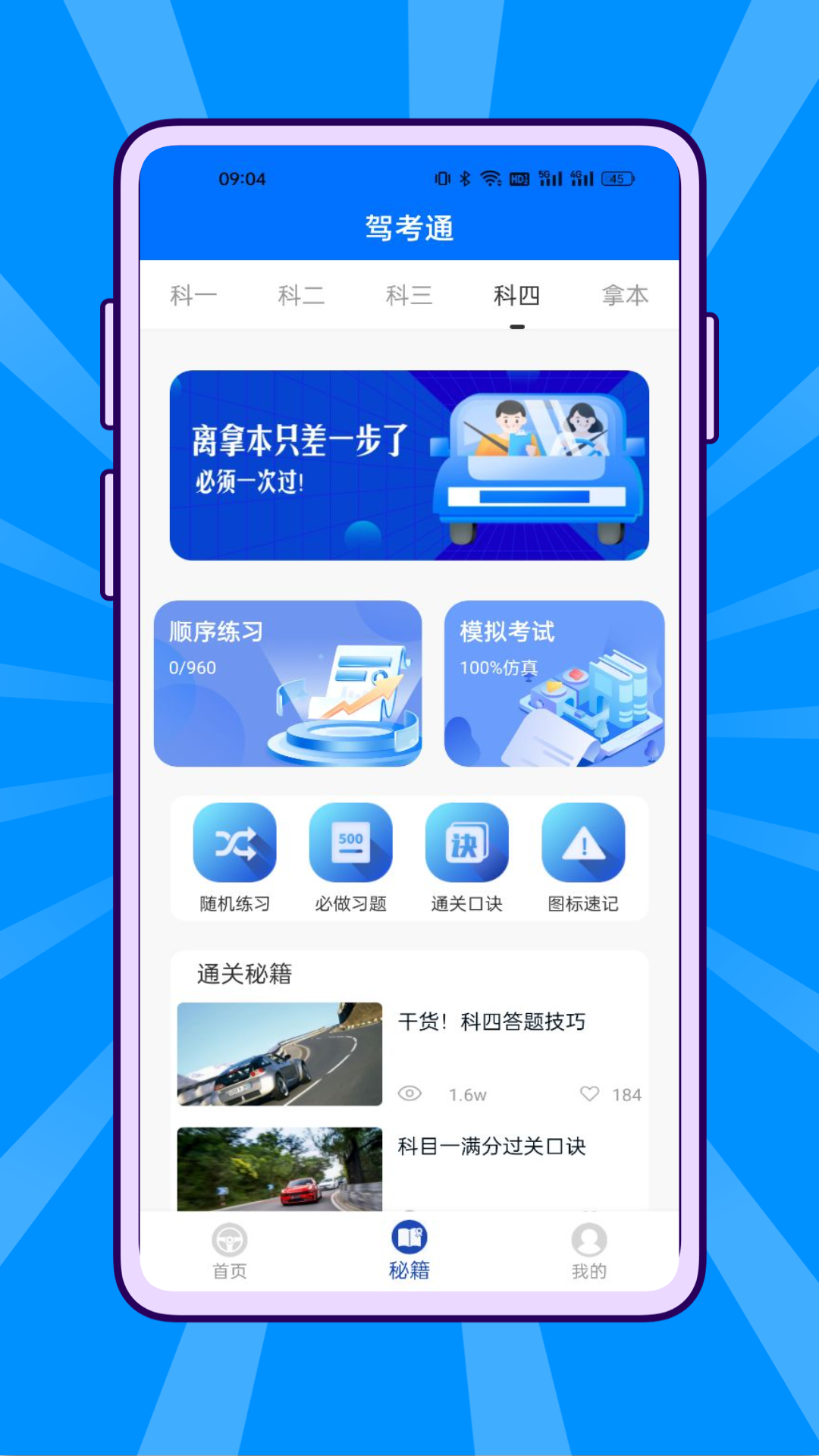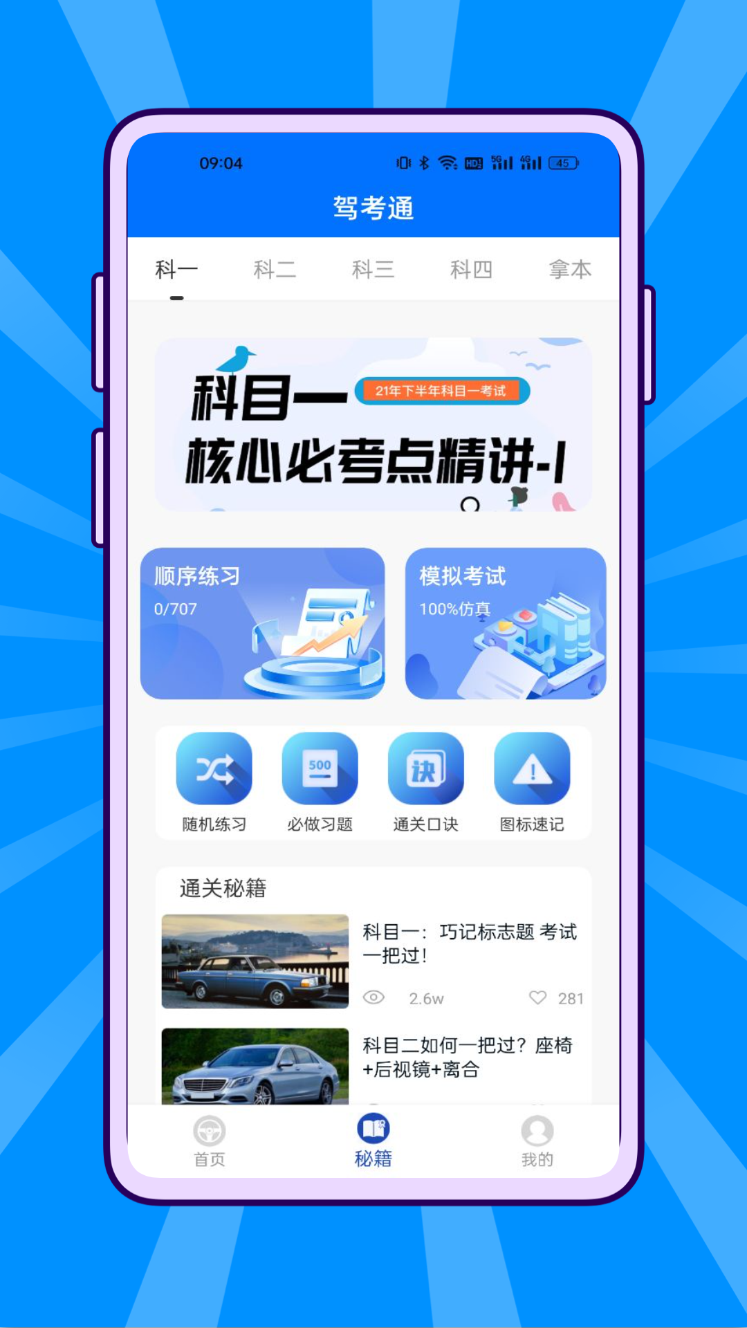 丰富的题库资源让你随时随地进行练习,加深对题目的印象。科目一和科目四的模拟考试题目都是随机抽选,真实检测知识掌握程度。考题详解结合交规变化逐题整理题目详解,理解透彻更好记忆。全真模拟考试环境,包含最新施行的新交规考题,提前适应考场氛围。交通标志板块图文并茂,介绍各类交通标志并附带说明,学习起来更加轻松。智能化的学习模式让你可以根据自身情况灵活安排学习计划,效率更高。