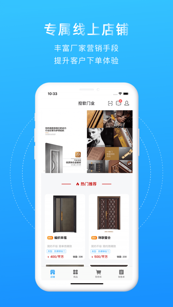 亲爱的朋友们,今天要向大家介绍的是一款专为门业行业量身打造的管理神器。它就像您店铺的智能小助手,帮您轻松搞定商品展示、订单跟踪、合同审核、库存管理等一系列繁琐工作。无论是经销商还是门店老板,都能通过它随时随地处理业务,让经营变得更简单高效。它还能帮您清晰掌握每日收益和销售数据,就像有个贴心管家在帮您打理生意呢!