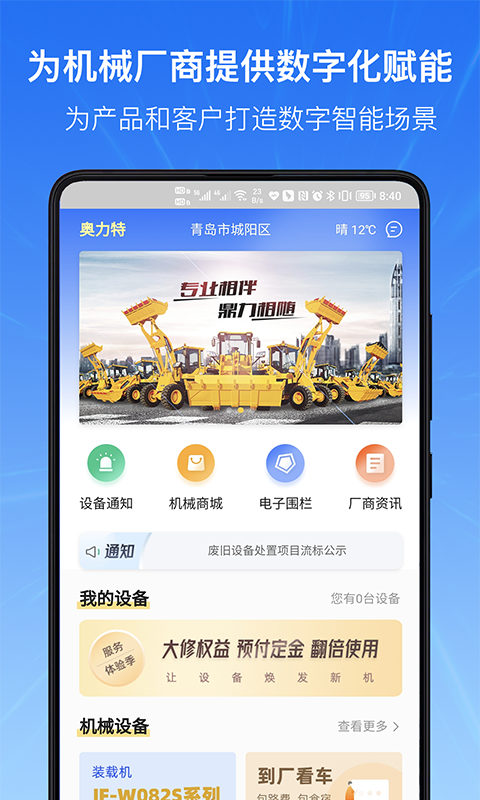 机械云智联是一款专为机械设备行业打造的智能管理应用,它通过云计算、大数据和物联网技术,帮助您实现对机械设备的远程监控、故障预警和维护管理。无论您是个体承包商还是大型施工企业,这款应用都能让您随时随地掌握设备动态,提升运营效率。它支持多平台使用,包括iOS、Android和Windows,让您通过手机、平板或电脑都能轻松管理设备。