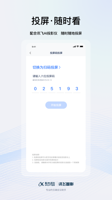 讯飞智影是一款主打会议投影记录等功能的智能办公软件,主要搭配智能投影仪和麦克风投屏器使用。它通过连通云端文件实现会议内容的高效管理,支持上传文档、扫码投屏、智能录音转写等核心功能,让会议记录变得轻松便捷。这款软件特别适合需要频繁进行会议记录和资料整理的职场人士,能有效提升工作效率,免去携带电脑的麻烦。