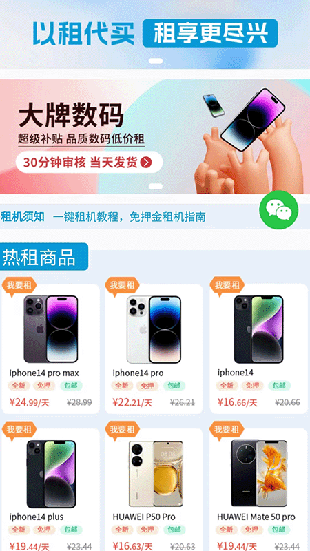 打开这款应用你会发现操作界面特别清爽,首页就能看到各种热门机型推荐。从入门款到旗舰机型应有尽有,而且每周都会上新最新发布的机型。选好心仪的设备后,只需要简单几步就能完成租赁流程,完全不需要复杂的手续和漫长等待。最贴心的是支持灵活的租期选择,从短期体验到长期使用都能找到合适方案。配送也超给力,顺丰快递送货上门,着急用的话还能直接去线下门店自提呢!还机时可以选择归还旧机换新机,或者续租延长使用时间,甚至租满后直接送给你,简直不要太划算!