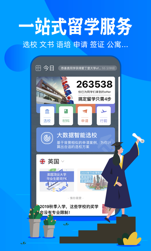 这款留学神器可是帮小伙伴们圆梦海外名校的贴心助手哦!它通过智能算法和大数据匹配,让你轻松搞定从选校到签证的全流程。无论是英国、美国、澳洲还是加拿大等热门国家,它都能提供精准的院校推荐和透明的申请进度追踪,还有文书、语言培训等增值服务,简直是一条龙服务到家啦!最棒的是,它的操作超级简单,连留学小白也能快速上手。