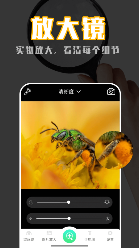 打开应用就像打开了新世界,摄像头瞬间变成高倍放大镜。看药品说明书时轻轻一扫,那些蚂蚁大小的字立刻变得清晰可见;读报纸遇到模糊的图片,用图片放大功能连纸张纹理都看得清楚。晚上起夜不用摸黑找开关,内置的超亮手电筒能照亮整个房间,还能切换成SOS求救灯模式。想看看窗外远处风景?切换到双筒望远镜模式,连对面楼阳台的花盆有几朵花都数得清。横着竖着都能用,亮度、放大倍数随手调节,就像给手机装上了瑞士军刀般的实用功能。