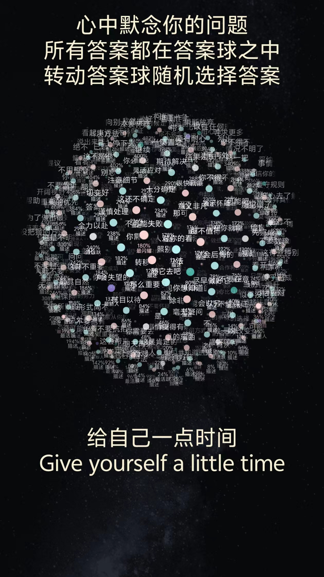 这款应用的独特之处在于将严肃的心理咨询转化为轻松的游戏化体验。它的问答数据库包含上千条精心设计的回应,既有实用建议也有幽默调侃,比如面对要不要表白可能得到行动比后悔更有价值这样的鼓励型答案。转盘功能支持自定义模板,能根据用户偏好生成专属决策工具。测试模块采用色彩心理学和MBTI等理论框架,结果呈现方式生动直观。最贴心的是所有功能都不需要注册登录,打开即用,完全保护隐私。夜间模式下的星空主题界面还能帮助舒缓焦虑情绪。
