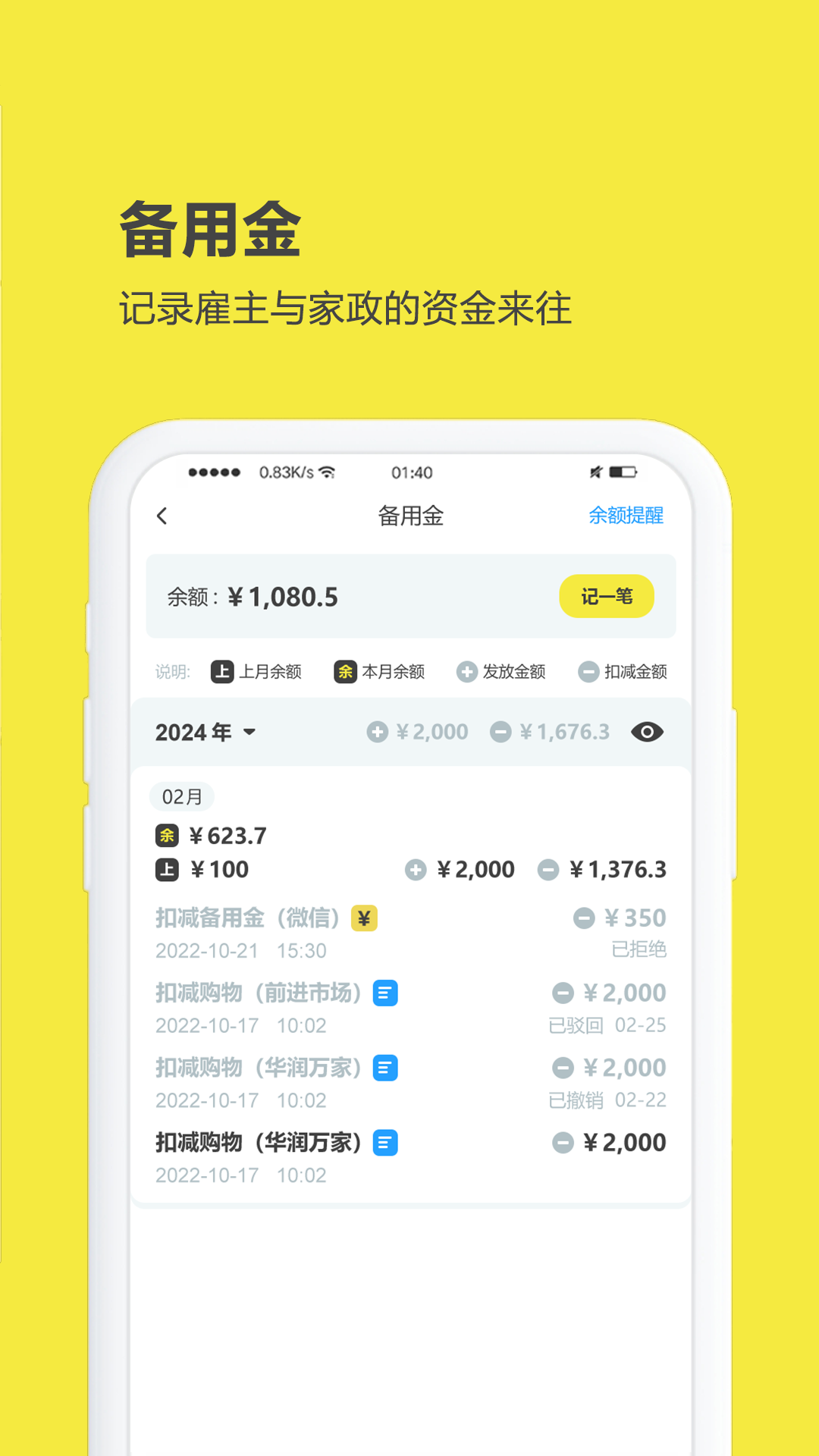 软件核心功能围绕采买全流程设计,支持双角色操作模式。雇主可主动发布采购任务并预拨备用金,家政人员则能实时记录商品名称、数量、价格及上传购物凭证,系统自动生成分类清单并计算余额。数据采用云端同步,雇主可随时查看历史记录与当前支出明细,家政人员也能通过留言功能反馈采购问题。软件提供图表化统计功能,按月或按品类分析消费趋势,辅助家庭预算规划。其操作界面简洁,3分钟内即可完成一次完整记账流程,降低使用门槛。