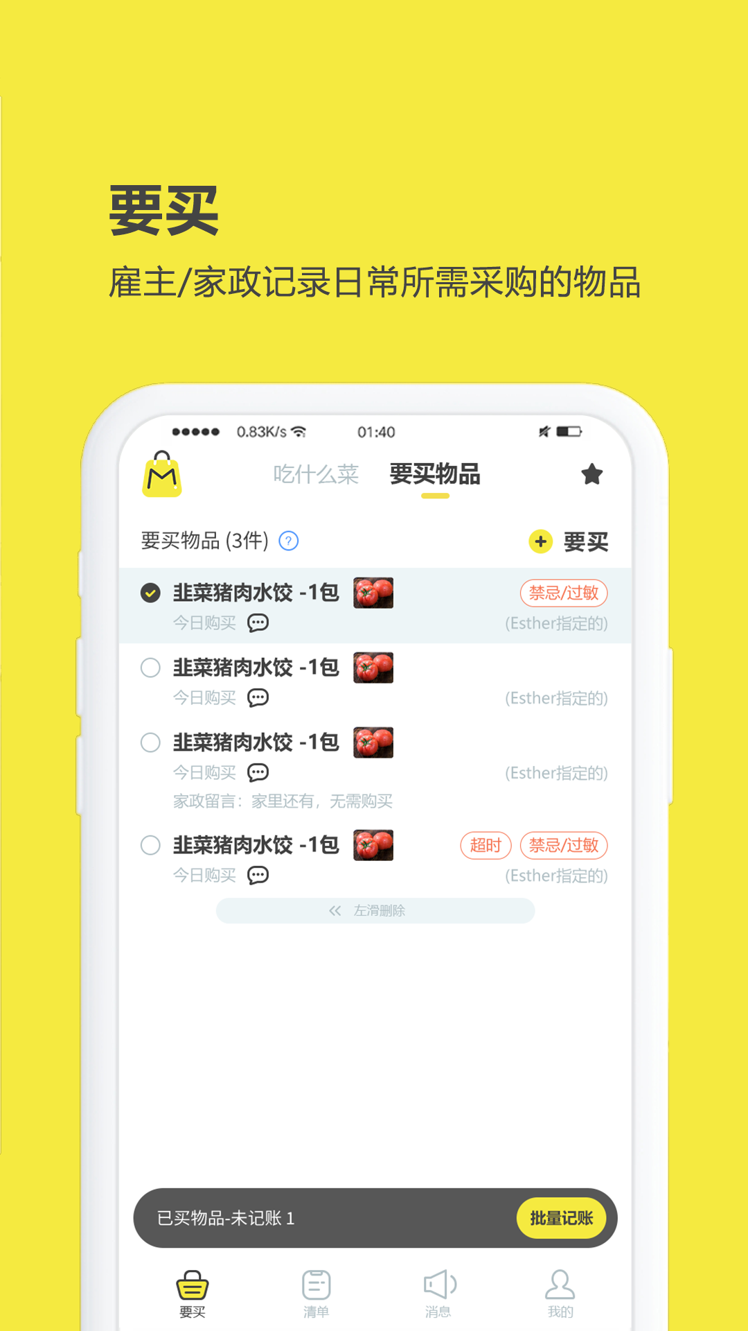 买菜清单是一款专为家政服务与家庭日常采买设计的透明化记账工具,解决雇主与家政人员之间因钱款去向不明而产生的信任问题。该软件通过数字化记录采购明细、备用金变动及任务指派等功能,实现支出透明化、数据可追溯,帮助双方建立高效协作的采买管理机制。软件适用于家庭雇主、家政服务人员及需要管理日常采购开支的用户群体。