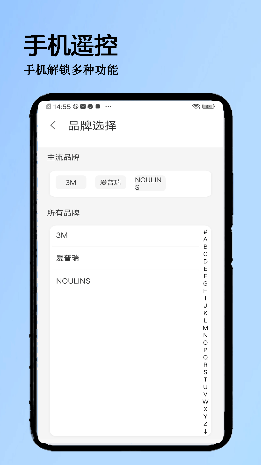 这款应用支持市面上绝大多数品牌的家电设备,涵盖电视、空调、音响、智能盒子等数千种型号。它内置庞大的遥控器码库,拥有超过25万种遥控器数据,兼容全球6000多个家电品牌。你可以通过简单的几步操作,快速匹配家中的电器设备。无论是老式家电还是最新智能设备,它都能完美适配。应用界面简洁直观,操作流畅,即使不擅长科技产品的朋友也能轻松上手。它还支持多设备管理,让你可以随时切换不同房间的电器控制。
