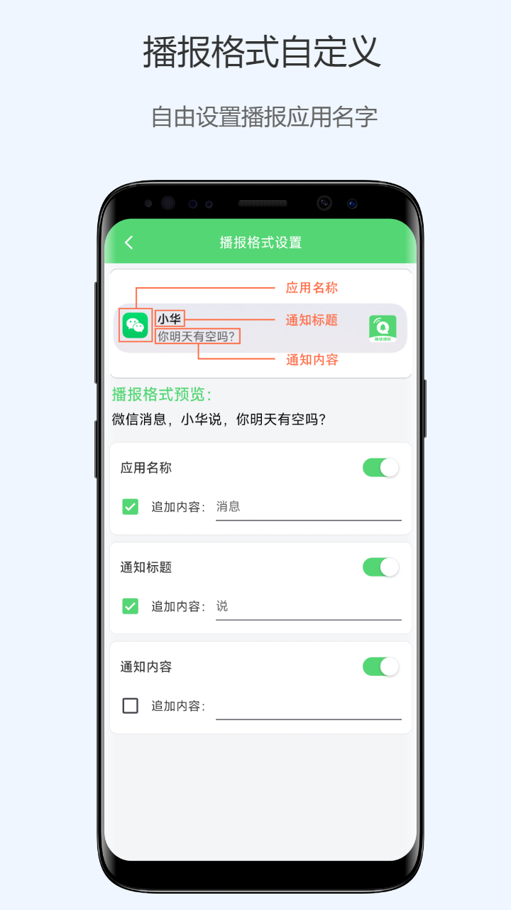 通知语音播报是一款超实用的手机小帮手,它能像贴心助理一样把收到的微信、短信、QQ消息用甜美语音读给你听。不管是开车时双手离不开方向盘,还是做饭时满手面粉,甚至健身时满头大汗,它都能让你不用看手机就掌握重要信息。特别适合老花眼的长辈和视力障碍的朋友,连盲人朋友都说这是生活好搭档呢!最新版本还加入了整点报时功能,就像身边多了个报时小闹钟。