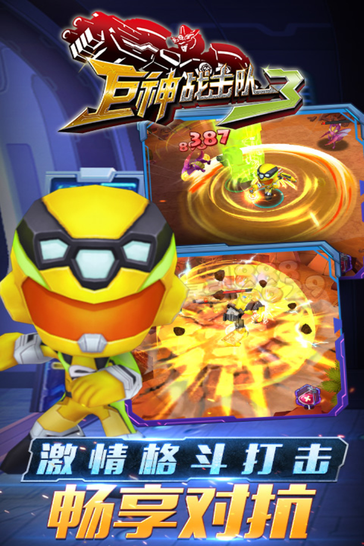 巨神战击队3是一款根据国产人气动漫改编的3D动作RPG手游,以超救分队为主题背景,讲述了新一代巨神战士对抗鼠王爷及其妖君军团的故事。游戏采用Unity3D引擎打造,拥有Q萌角色造型与炫酷机甲特效的独特结合,完美还原了动画中红宵卫、黄擎卫等经典角色形象。作为系列第三部作品,它在保留前作精髓的基础上,新增了翅膀空战系统、多角色协同作战等创新玩法,2025年最新版本还加入了竞技场匹配和技能特训等新功能。