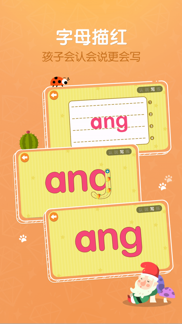 这是一款专为小朋友设计的拼音启蒙小帮手,通过可爱的卡通形象和有趣的互动方式,帮助宝贝们轻松掌握63个拼音字母。内容严格按照国家规范设计,涵盖了声母、韵母和整体认读音节,还搭配了126组拼读训练和30多个互动小游戏,让学习过程就像在玩耍一样自然。