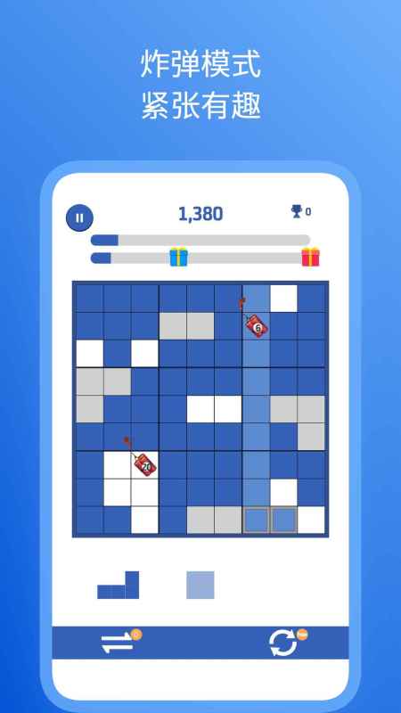 在这款你需要把各种形状的彩色方块拖进9×9的棋盘里,通过填满整行、整列或3×3的小宫格来消除得分。没有时间限制,可以慢慢思考每一步,但要注意哦,方块一旦放下去就不能移动啦!随着关卡推进,难度会逐渐升级,还会遇到炸弹关卡和随机生成的谜题,超级考验你的策略布局能力。完成挑战还能解锁排行榜和惊喜道具,成就感满满!