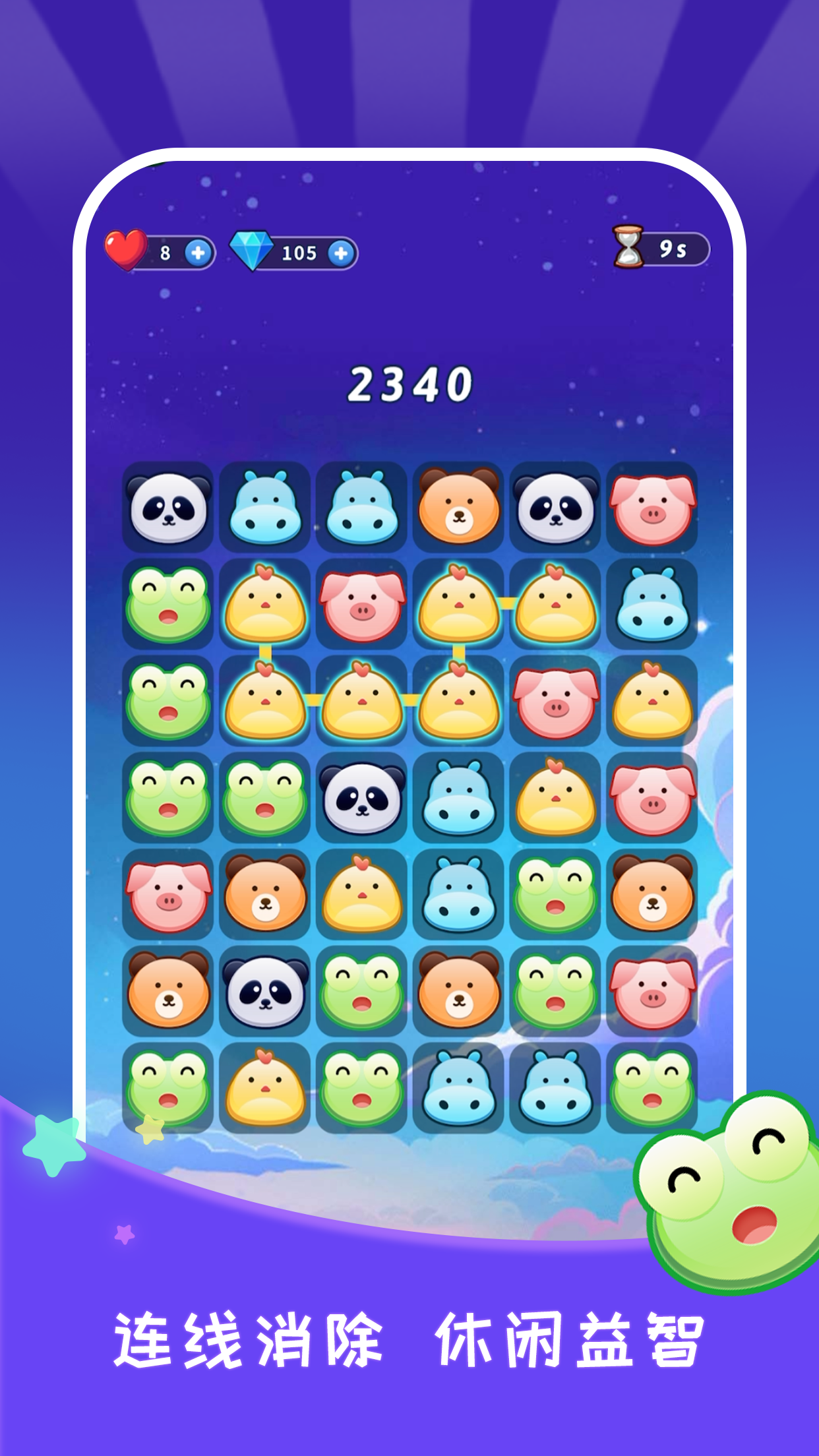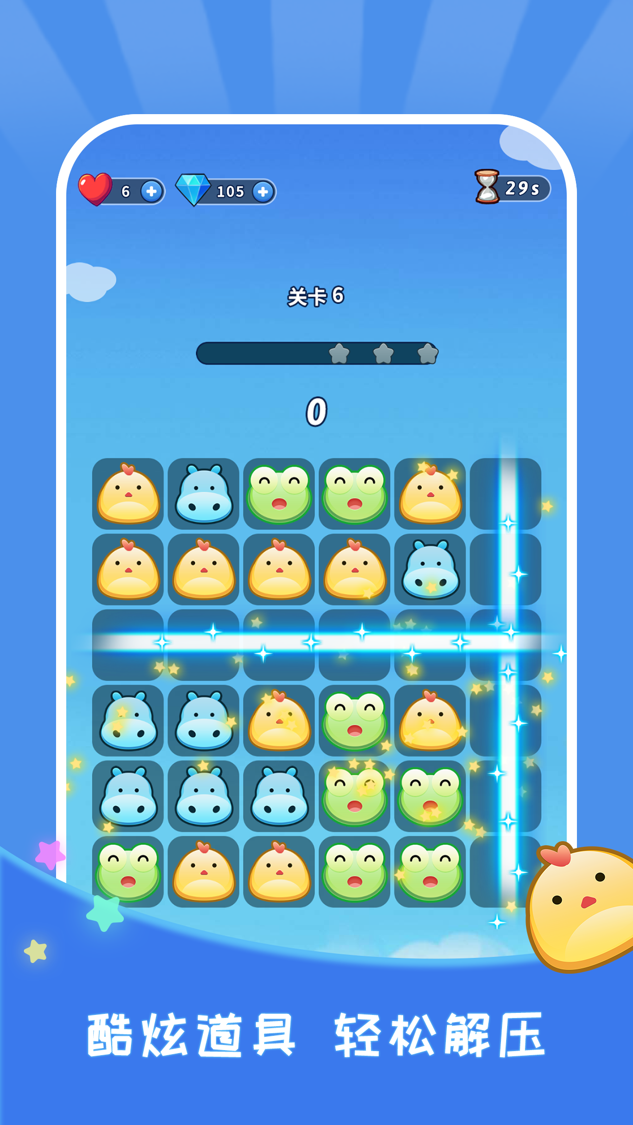 奇妙动物消除大作战是一款以动物为主题的休闲消除类手游,结合经典的三消玩法,玩家需要通过滑动屏幕连线相同种类的动物头像进行消除。游戏画面采用Q版卡通风格,动物形象可爱呆萌,音效欢快轻松,整体氛围充满治愈感。无论是想打发碎片时间还是挑战脑力,这款游戏都能带来愉悦的体验。