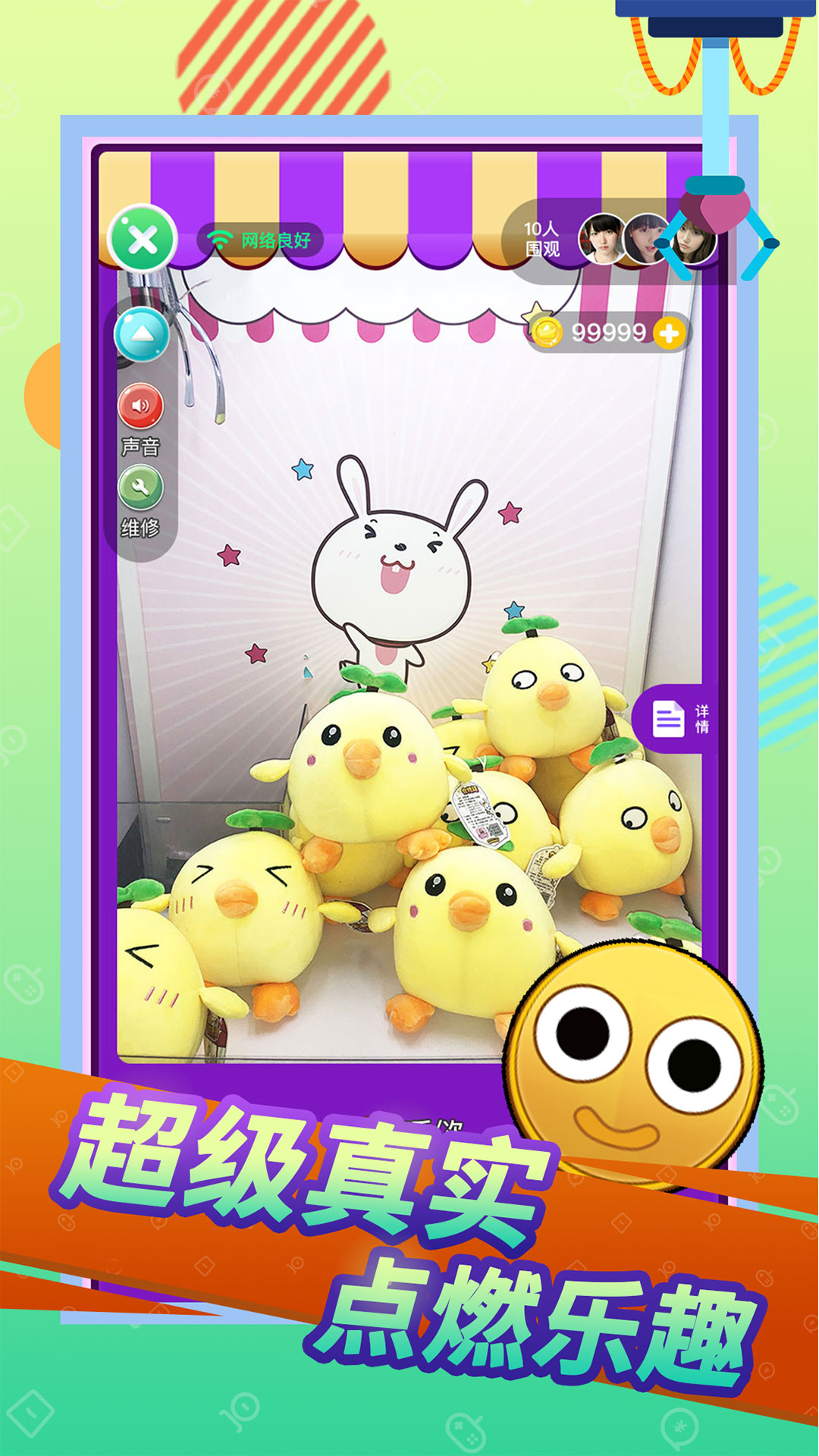 口袋抓娃娃是一款超萌的模拟抓娃娃玩法的休闲手游,让你在手机上就能体验到真实抓娃娃的乐趣。这款游戏采用了高清实时直播技术,让你通过手机屏幕就能远程操控真实的娃娃机,抓到心仪的娃娃还能直接包邮送到家,完全不用出门排队人挤人。游戏里汇集了超多可爱的卡通娃娃和潮流手办,从经典玩偶到限量款周边应有尽有,绝对能满足你的收藏欲。