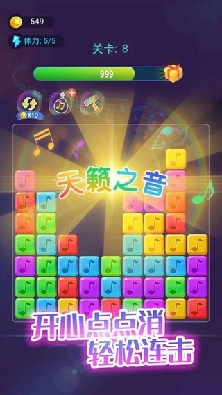 2.音符点点消以其独特的魅力,成功在众多手机游戏中脱颖而出。它不仅提供了一个高质量的游戏体验,更让玩家在忙碌的生活中找到了一份特别的乐趣。如果你对音乐有着不一样的热爱,对解谜充满激情,那么不妨下载音符点点消,开始一场音乐与智慧的旅程吧。