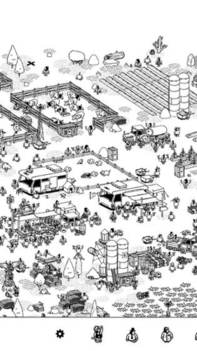 游戏的核心玩法是在手绘插画场景中寻找指定的隐藏目标。玩家需要仔细观察场景中的每个细节,通过点击、拖动等操作与环境互动,发现隐藏在复杂画面中的特定人物或物品。游戏包含森林、沙漠、城市、工厂等20多个主题场景,每个场景都设计精巧且独具特色。玩家需要完成当前关卡的目标数量才能解锁下一关卡,游戏进程推进,难度会逐步提升,考验玩家的观察力和耐心。