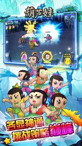 葫芦娃大作战是一款以经典动画葫芦兄弟为背景的国风策略塔防手游,完美还原了童年记忆中的葫芦娃形象和故事情节。游戏创新性地融合了三消合成、塔防防御和Roguelike技能升级玩法,让玩家在怀旧的同时体验全新的游戏乐趣。你可以收集七个葫芦娃兄弟,组建专属阵容对抗蛇精、蝎子精等反派角色,重温救爷爷的经典剧情。剪纸艺术风格与3D技术的结合,让整个游戏画面既保留传统韵味又不失现代感。