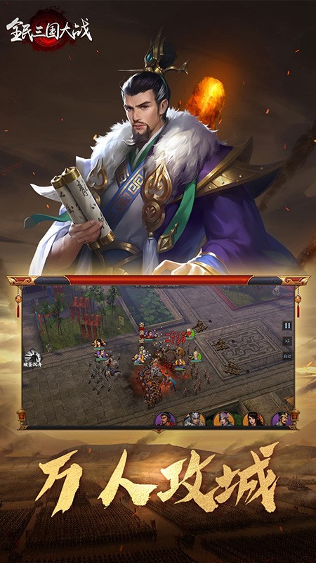 全民三国大战是一款以三国历史为背景的卡牌策略手游,采用写实风格与即时战略玩法相结合的设计,为玩家呈现一个充满谋略与热血的战场。游戏深度融合了武将收集、羁绊搭配、实时对战等核心玩法,通过高度还原三国时期的著名战役与人物关系,打造出一个兼具历史厚重感与竞技趣味性的虚拟世界。玩家将扮演一方诸侯,通过招募名将、培养部队、制定战术,在乱世中书写属于自己的传奇篇章。