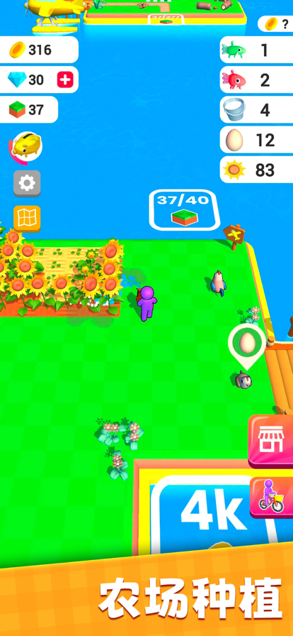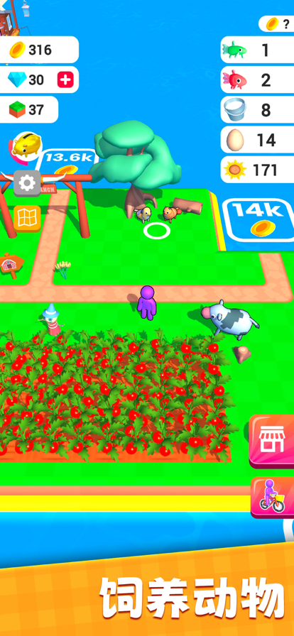 咱们的游戏开局会拥有一块待开发的土地,通过播种、浇水、施肥等操作,让作物茁壮成长。等苹果、番茄成熟后,可以拉到市场卖掉换金币,再用这些钱买新种子或扩建农场!后期还能解锁磨坊、酿酒坊等设施,把农产品加工成奶酪、果酱等高级货,赚更多小钱钱~除了种地,养动物也是超有趣的环节,喂牛挤奶、捡鸡蛋羊毛,每天都有新鲜事!游戏还设计了动态天气系统,晴天收割、雨天排水,真实感拉满~