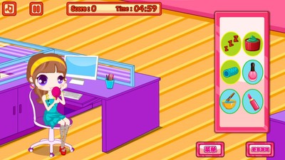 一进入游戏,玩家会被带入一个五颜六色的办公环境中。在有限的时间内,你需要利用各种策略和工具,完成从简单的涂口红、画眼线到整体妆容变化的任务。而游戏中最大的对手,就是时刻在你背后巡视的老板以及突然走过来打个招呼的同事。一旦被他们发现,那么挑战就宣告失败,你得重新来过。